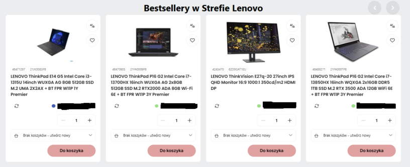 ponadto, na głównych podstronach, tj. Strefa Dell, Lenovo, APC etc. znajdziesz również nasze bestsellery lub okazje cenowe, które od razu możesz dodać do koszyka.