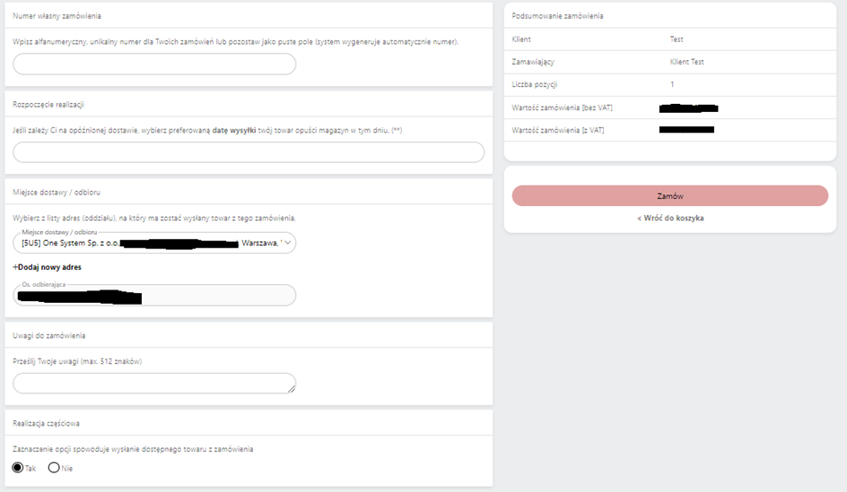 *a jeśli wszystko się zgadza możesz kliknąć Zamów (kliknięcie przycisku Zamów nie wiąże się jeszcze ze złożeniem zamówienia)