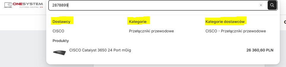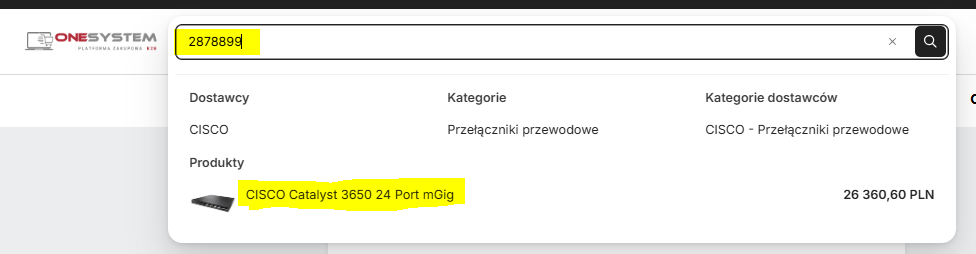 po konkretnej nazwie, kodzie produktu lub kodzie producenta. Z tego poziomu możesz odnaleźć także odpowiedniego dostawcę, kategorię produktu czy kategorię dostawców.