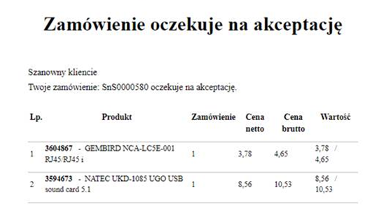 jeśli wszystko się zgadza, kliknij Zamów (zamówienie zostanie złożone)