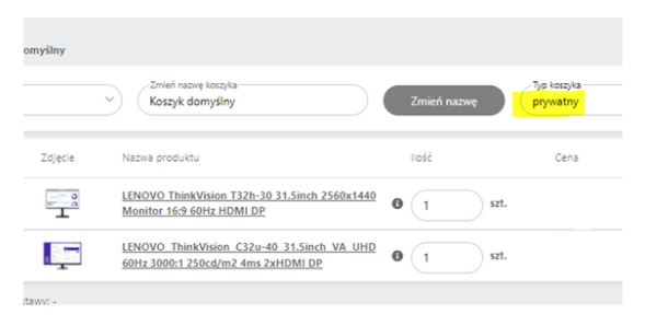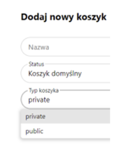 koszyki mogą mieć status prywatny (widoczny tylko dla Ciebie – właściciela koszyka) lub publiczny (widoczny dla innych użytkowników – w tym np. Twojego opiekuna handlowego w One System. Koszyk zawsze będzie jednak przynależał do Ciebie – żaden użytkownik zewnętrzny nie może zmienić jego statusu.